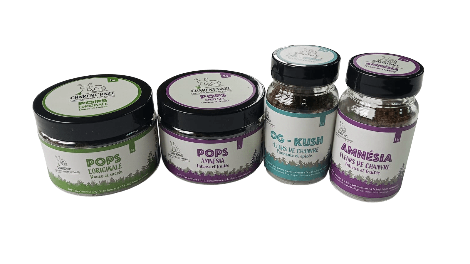 Choisissez parmi les variétés de Fleurs “L’Originale”, “Gorilla-K”, “Amnesia” , “OG Kush”, “Pollen”, ” Pops”, “Pops Amnesia”, “la trime” (premium ou machine), les infusions et le miel.
